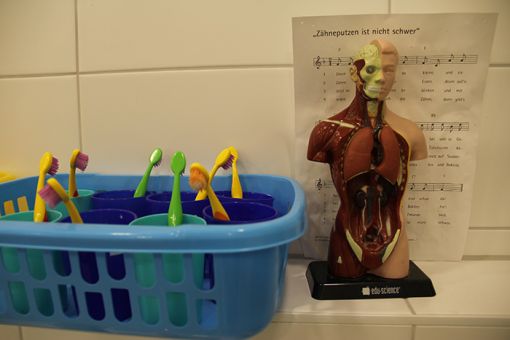 Abseits verkehrsreicher Straßen ist unsere Einrichtung von Wiesen, Feldern, Wald und Teichen umgeben. Der alltägliche Kontakt zur Landwirtschaft, zu Pflanzen und Tieren ist ein fester Bestandteil des Umgangs mit unseren Kindern.