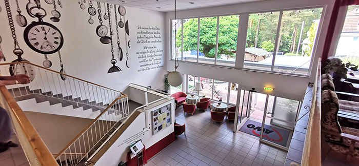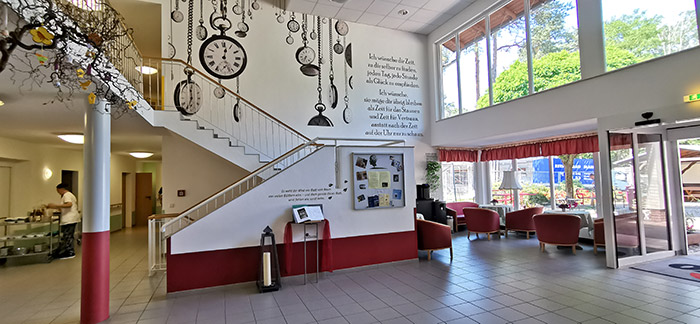 Unsere Einrichtung ist unterteilt in vier Wohnbereiche, auf zwei Etagen. Ein Farbleitsystem erleichtert unseren Bewohnerinnen und Bewohnern die Orientierung im Haus.